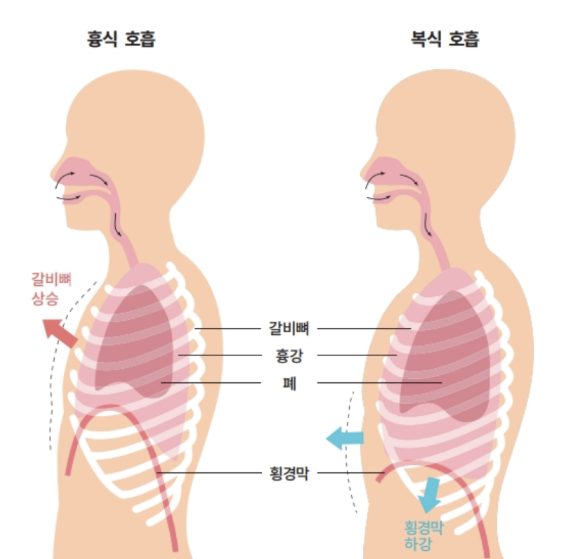 반면 안정적인 코 호흡은 복식 호흡으로 가능하며, 폐하부까지 사용하는 깊고 느린 호흡입니다. 이는, 부교감신경을 활성화시킵니다. 호흡은, 이렇듯 산소-이산화탄소의 가스 교환만이 아닌, 자율신경계를 매개로 전신의 스트레스 반응과 회복 능력에 영향을 미칩니다.